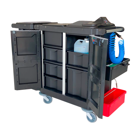 Solar System PLUS 3.0 is trolley in recycled plastic powered by solar panels, that takes advantage of both natural and artificial light.