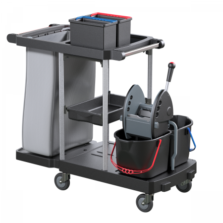 It is ideal for for dusting, waste collection and floor and surfaces cleaning, all in one trolley
