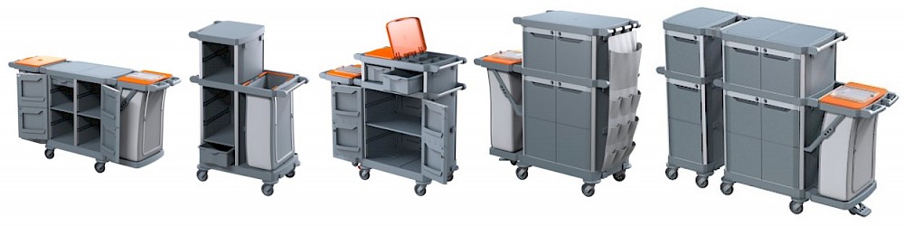 Il lavoro è reso efficiente con soluzioni personalizzabili, il sistema è modulare ed il carrello può essere facilmente adattato alle diverse tecniche di pulizia (es. sistema mop o pre-impregnato) o alle diverse strutture, scalabile per piccoli come per grandi hotel.