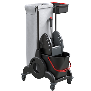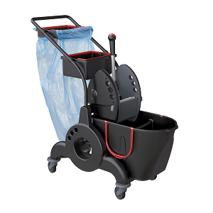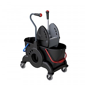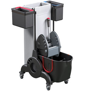 Giotto è un carrello lavaggio per pavimenti di grandi dimensioni, con mop o ricambi piatti; Carrello per le pulizie professionali di eccezionale solidità ed affidabilità anche nella versioni ReUse realizzate con plastiche reciclate e certificate secondo i criteri CAM