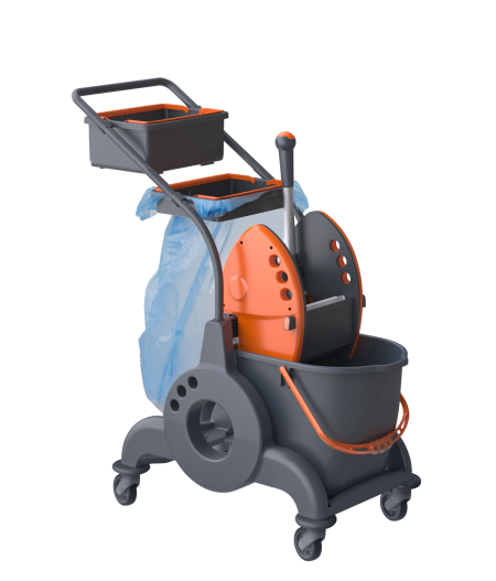 GIOTTO TC LT 25, base LT 25 con ruote Ø 80mm in plastica, secchio 25 lt, strizzatore, vaschetta, p.sacco
