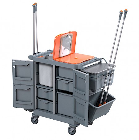 - Carrelli dotati di serratura a chiave, coperchi e porta scope a scomparsa