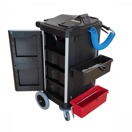 Solar System COMPACT 2.0 è un carrello in plastica ReUse alimentato da pannelli solari, così da poter sfruttare sia la luce naturale che artificiale.